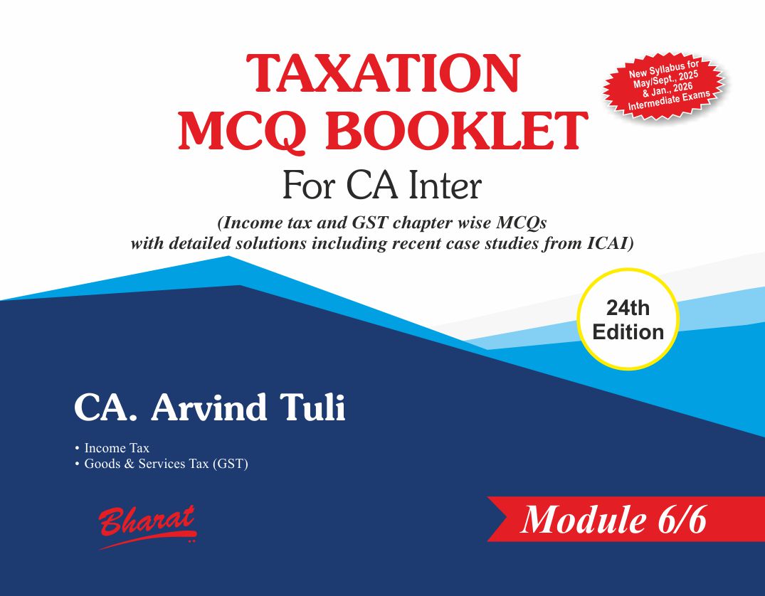 PART 1. INCOME TAX QUESTIONS M1 - Part A Basics / Residential Status / Scope of Income / Rates of Tax M1 - Part B Gifts M1 - Part C Returns M1 - Part D(a) Advance Tax M1 - Part D (b) & (c) TDS and TCS M1 - PART F House Property M1 - PART G Salary M2 - PART A Capital Gains M2 - PART B & C Business & Profession M2 - PART D Other Sources M2 - PART E Clubbing M2 - PART F Set off of losses M2 - PART G Deductions from GTI M2 - PART H Total Income PART 2. GST QUESTIONS M3 - Section A Introduction to GST M3 - Section B GST Supply M3 - Section C GST Exemptions M3 - Section D GST Registration M3 - Section E & F Charge of GST M3 - Section G Time of Supply M3 - Section H Value of Supply M3 - Section I GST Payment M3 - Section J Input Tax Credit - ITC M3 – Section K Documents Including E-way bill & E_invoice M3 - Section M to P Returns, TDS, TCS, Accounts & records, POS PART 3. INCOME TAX SOLUTIONS M1 - Part A Basics / Residential Status / Scope of Income / Rates of Tax M1 - Part B Gifts M1 - Part C Returns M1 - Part D(a) Advance Tax M1 - Part D(b) & (c) TDS and TCS M1 - Part F House Property M1 - Part G Salary M2 - Part A Capital Gains M2 - Part B & C Business & Profession M2 - Part D Other Sources M2 - Part E Clubbing M2 - Part F Set off of losses M2 - Part G Deductions from GTI M2 - Part H Total Income PART 4. GST SOLUTIONS M3 - Section A Introduction to GST M3 - Section B GST Supply M3 - Section C GST Exemptions M3 - Section D GST Registration M3 - Section E & F Charge of GST M3 - Section G Time of Supply M3 - Section H Value of Supply M3 - Section I GST Payment M3 - Section J Input Tax Credit - ITC M3 - Section K Documents Including E-way bill & E_invoice M3 - Section M to P Returns, TDS, TCS, Accounts & records, POS |