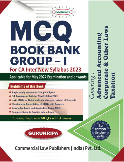 Commercial's Padhuka's MCQ Book Bank Group 1 for CA Inter (2023 Scheme) by Gurukripa