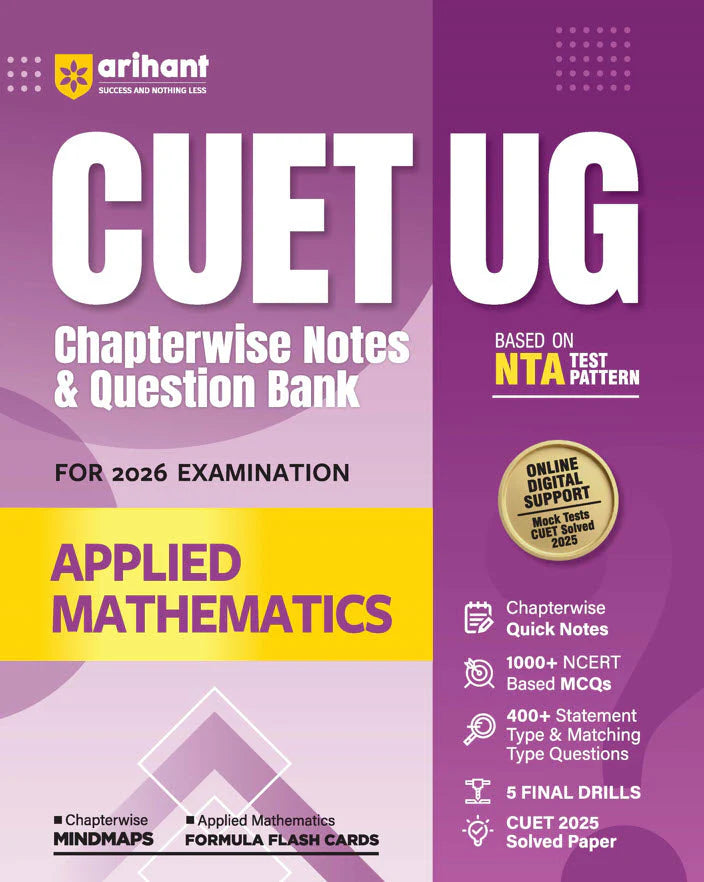 CUET UG Chapter-wise Notes & Question Bank of Applied Mathematics (For 2026 Examination) by Arihant Publications is a comprehensive preparation book designed as per the latest NTA syllabus issued on 03 Jan 2026. Based on the NTA test pattern, this English medium book provides chapter-wise quick notes, NCERT-based MCQs, case-based and matching-type questions, along with mind maps, flash cards, and solved papers to ensure structured and exam-focused preparation for CUET UG 2026.