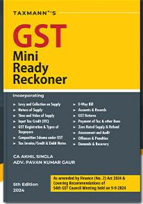 The Present Publication is the 5th Edition and has been amended by the Finance (No. 2) Act, 2024. It covers the recommendations of the 54th GST Council Meeting held on 09-09-2024 and is authored by CA. Akhil Singla and Adv. Pavan Kumar Gaur, with the following noteworthy features: