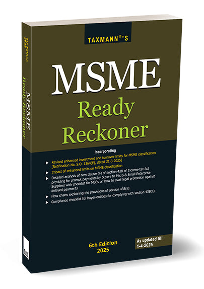 MSME Ready Reckoner is a comprehensive, up-to-date guide to help micro, small, and medium enterprises (MSMEs) understand the evolving legal, tax, and regulatory environment. This edition incorporates the most recent changes under the MSMED Act, 2006 (including revised composite criteria for classification) and the Income-tax Act 1961 (especially the newly introduced clause (h) in Section 43B relating to prompt payments to MSE suppliers). It clarifies how to utilise the enhanced investment and turnover limits for MSMEs while offering step-by-step guidance, compliance checklists, illustrations, and case studies to manage all aspects of running an MSME in India.