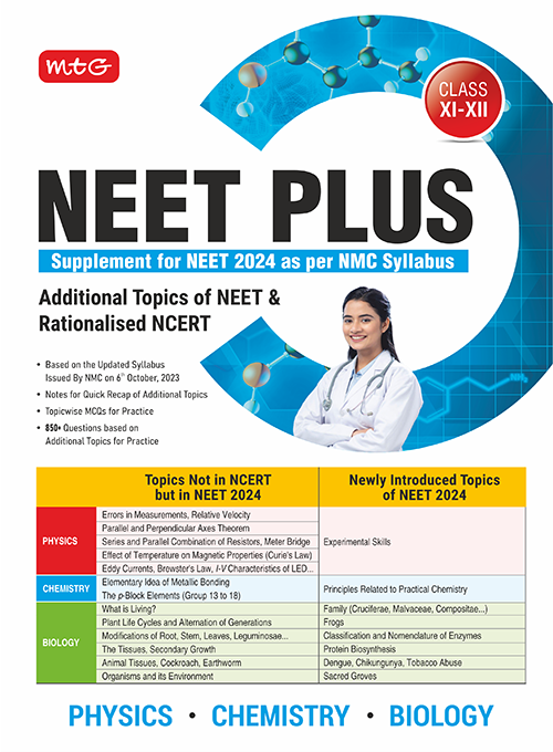 MTG has launched the most wanted and useful supplement for NEET 2024 based on the updated syllabus by NMC given on 6th October, 2023. Now, no need to worry about NEET 2024 rationalized syllabus by NMC. The NEET Plus Supplement for NEET 2024 changed syllabus has got you covered with it updated content and vast range of practice questions.
