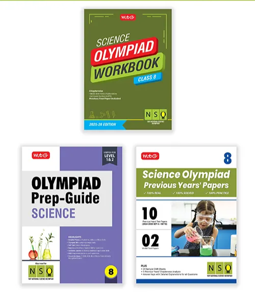 MTG Science Olympiad books combo of 3 books consisting of Olympiad Workbook, Olympiad Prep-Guide, and Olympiad Previous Years’ Papers will help you excel in the SOF NSO 2025-26 exam. To help the student enhance their Olympiad Skills for NSO, the 3 books in Olympiad Combo comprise the following features-