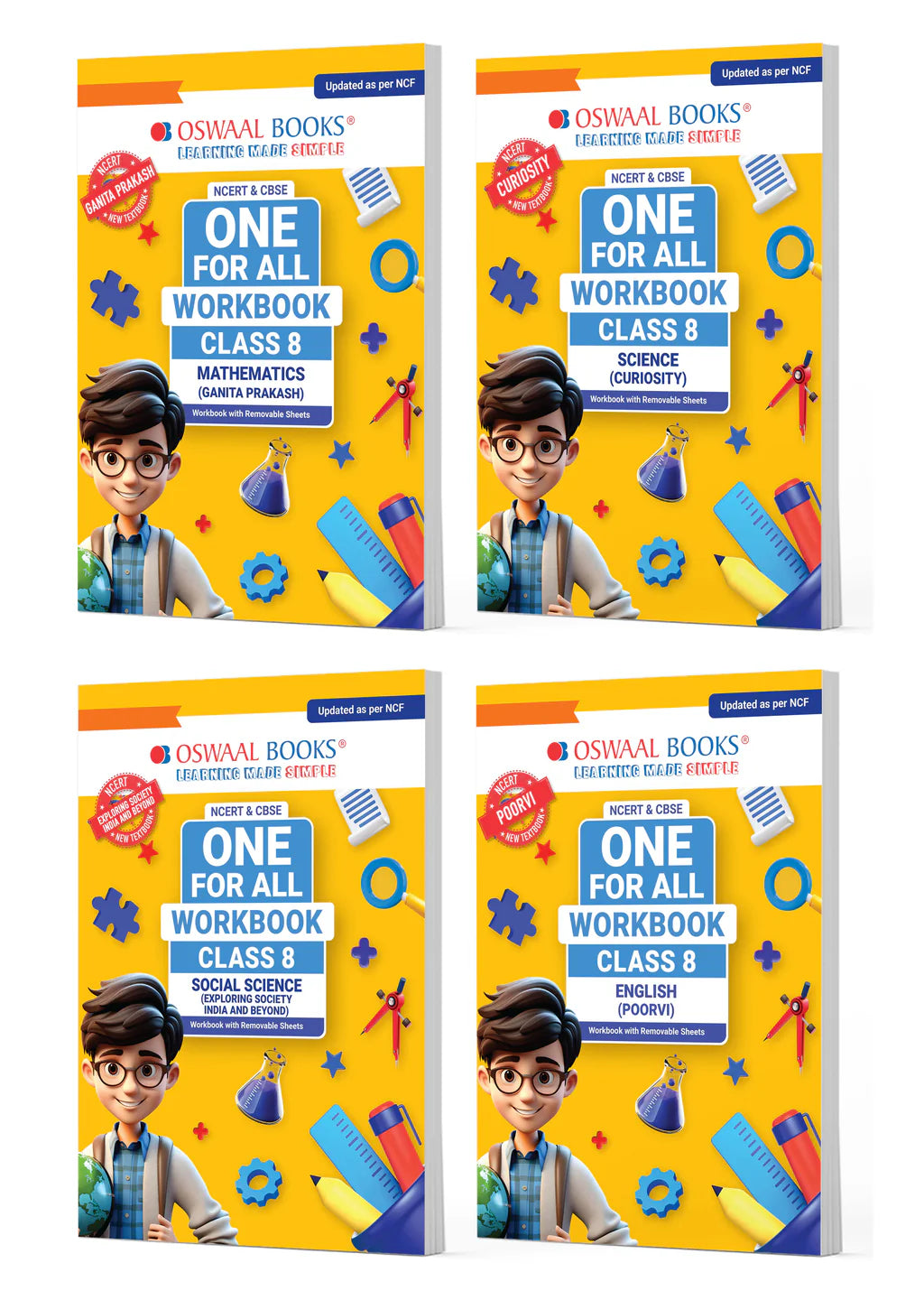 NCERT & CBSE One for All Workbooks for Class 8 (Math, English, Science, Social Science) Set of 4 Books by Oswaal Books