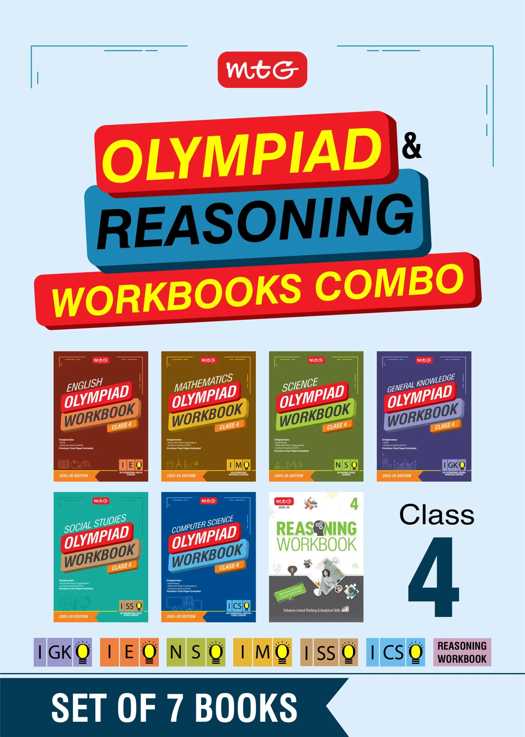 MTG’s fully revised & updated “Olympiad Workbook” combo of 7 books for NSO, IMO, IEO, ICSO, IGKO, ISSO and Reasoning – the perfect tool to help students prepare for their upcoming SOF Olympiad (2025-26) exam. Packed with an interactive question bank, this workbook is designed to keep students engaged and motivated throughout their learning process. With a focus on developing important knowledge needed for success, this workbook is a must-have for any student looking to excel in their Olympiad exams.