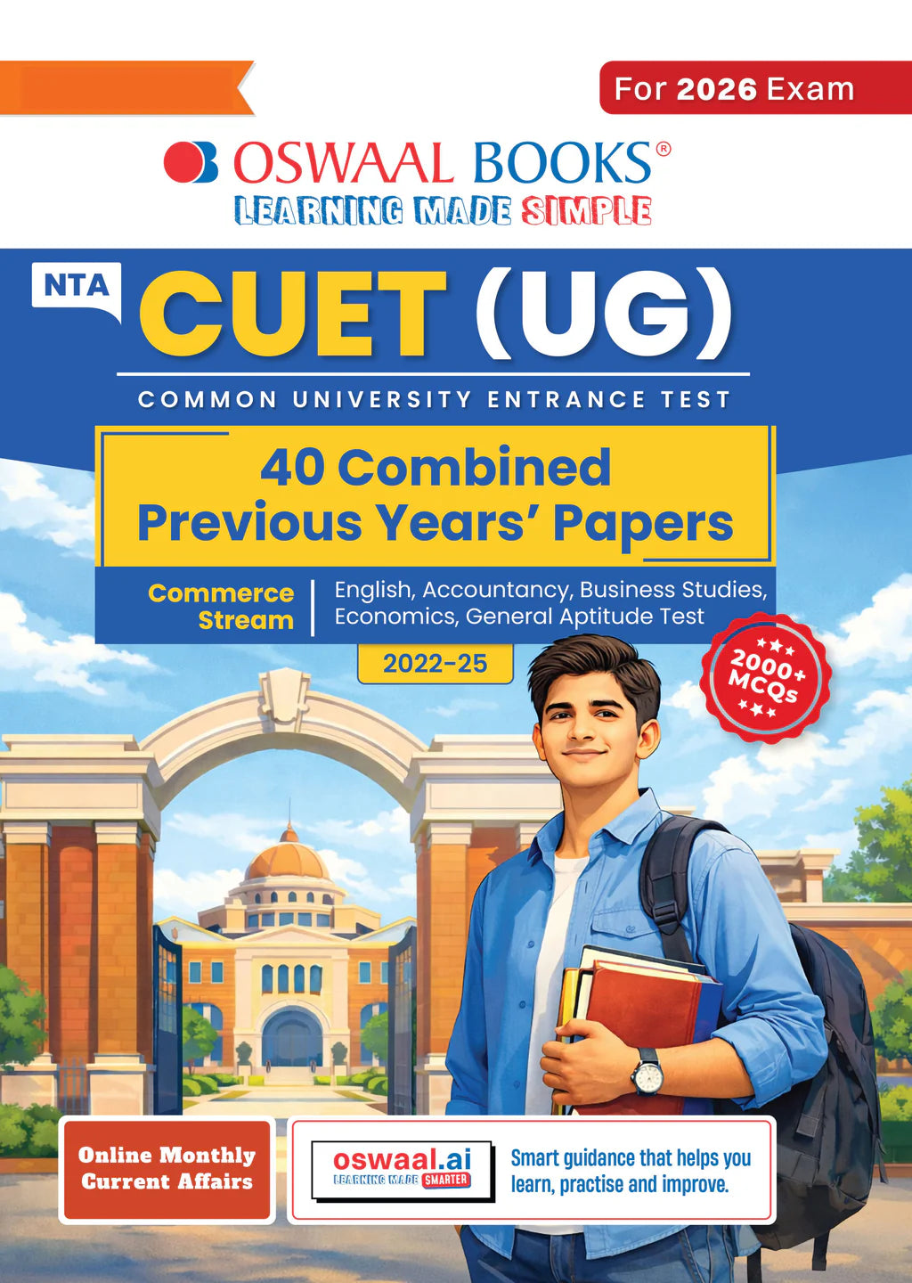 Oswaal NTA CUET (UG) 40 Combined Previous Years’ Solved Papers assists students in understanding the pattern of exams, key questions, and answer techniques, as well as increases the confidence levels of students through practice.