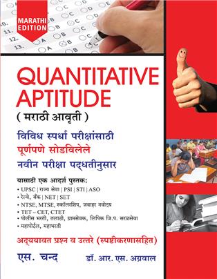 Quantitative Aptitude (मराठी आवृत्ती) हे पुस्तक डॉ. आर.एस. अग्रवाल यांचे सर्वात लोकप्रिय पुस्तक आहे जे Quantitative Aptitude (English Edition) चे मराठी भाषांतर आहे. 1989 मध्ये प्रकाशित झाल्यापासून, फनंदजपजंजपअम ।चजपजनकम या पुस्तकाने विद्यार्थी आणि स्पर्धा परीक्षांच्या विस्तृत श्रेणीत बसणाऱ्या इच्छुकांमध्ये आदर आणि स्वीकृतीचे विशेष स्थान मिळवले आहेण् एक पायनियर आणि पहिली पसंती म्हणून, पुस्तक विद्यार्थ्यांच्या पाठीशी खंबीरपणे उभे राहिले आहे आणि त्यांना विषयाचे सखोल ज्ञान आणि आणखी कठोर सराव देऊन त्यांची स्वप्ने पूर्ण करण्यात मदत केली आहे. आता, 25 वर्षांहून अधिक आणि एक चतुर्थांश शतकांनंतर, परीक्षांच्या बदलत्या वातावरणासह, सहज समजण्याजोग्या उपायांसह सर्वोत्तम सामग्री प्रदान करण्याच्या मूळ संकल्पनेवर ठाम राहून पुस्तकाने स्वतःला पुन्हा शोधून काढले आहे. आधीच्याच सशक्त पुस्तकात सुधारणा करून, वाचकांची प्रदीर्घ मागणी पूर्ण करण्यासाठी आम्ही सुधारित आणि नाविन्यपूर्ण आवृत्ती आणण्याचा प्रयत्न करत आहोत आणि त्यांना त्याचा खूप फायदा होईल अशी प्रामाणिक आशा आहे.