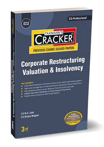 Corporate Restructuring Valuation & Insolvency | CRACKER is a comprehensive and exam-focused resource meticulously designed for students preparing for the CS-Professional examination (New Syllabus | Group 2 – Paper 6). This book provides an in-depth compilation of fully solved questions from past CS-Professional examinations, organised by topic, along with up-to-date answers that reflect the latest laws and case developments and detailed analytical tools for effective exam preparation. This volume ensures conceptual clarity and practical efficiency, equipping aspiring professionals to navigate the demanding landscape of corporate restructuring, valuation, and insolvency.
