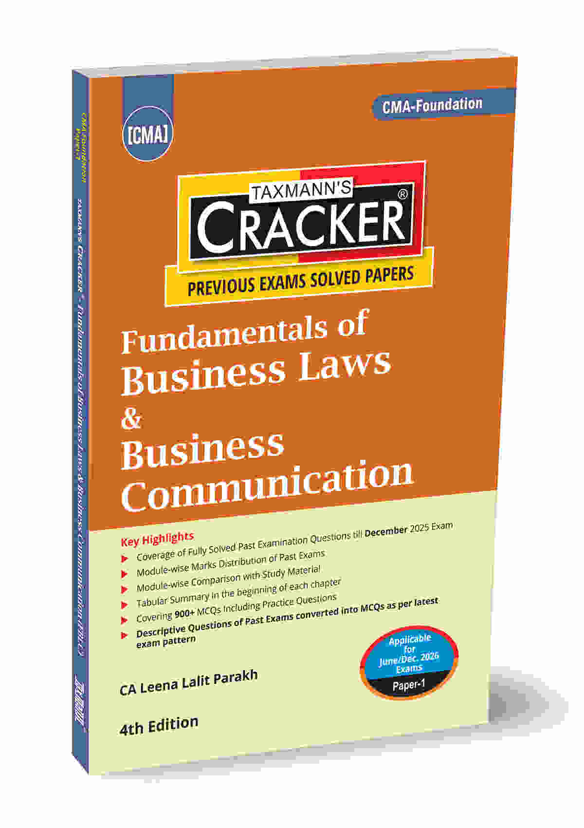 Fundamentals of Business Laws & Business Communication (FBLC | Law) – CRACKER is a comprehensive, exam-oriented study companion designed specifically for CMA Foundation – Paper 1, fully aligned with the ICMAI syllabus for the June/December 2026 examinations. This book offers a structured and practice-driven approach to mastering both Business Laws and Business Communication, with a sharp focus on the latest examination pattern, MCQ-based assessment, and conceptual clarity. The book adopts the trusted CRACKER methodology, integrating conceptual explanations with extensive question practice, past examination analysis, and module-wise performance insights. It is designed not merely for learning theory, but for strategic exam preparation, enabling students to understand what to study, how to study, and how questions are actually framed in the CMA Foundation examination.