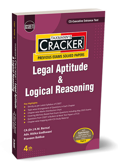 Legal Aptitude & Logical Reasoning | CRACKER is a focused and up-to-date study resource designed for the CS-Executive Entrance Test (CSEET) – Paper 2. It meticulously follows the latest CSEET syllabus, covering the Legal Aptitude and Logical Reasoning components. The book equips aspirants with ample practice questions, memory-based previous exam questions, and a rapid revision tool, offering a wholesome exam preparation experience.