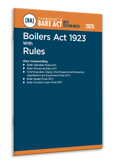 Boilers Act 1923 with Rules [Bare Act with Section Notes] by Taxmann offers a comprehensive, up-to-date compendium of India's primary legislation governing boilers' design, manufacture, operation, and inspection. This authoritative volume consolidates the original Act along with all relevant rules, including: