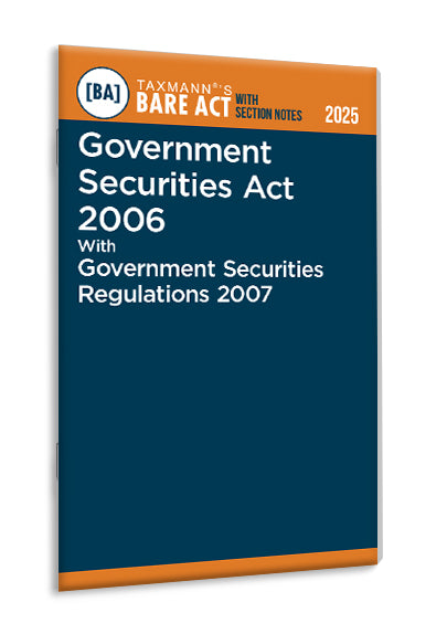 Government Securities Act 2006 with Government Securities Regulations 2007 [Bare Act with Section Notes ] by Taxmann is a comprehensive and authoritative compilation of India's principal legislation governing government securities' creation, issuance, transfer, and management. This book consolidates the bare text of the Government Securities Act, 2006, along with the Government Securities Regulations, 2007, and concise notes on each section. It is designed to clarify the legal framework and procedural requirements pertaining to government bonds, promissory notes, stock certificates, subsidiary general ledger accounts, and more.