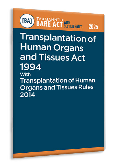 Transplantation of Human Organs and Tissues Act 1994 with Transplantation of Human Organs and Tissues Rules 2014 [Bare Act with Section Notes] by Taxmann is a comprehensive legal reference focusing on the regulation of human organ and tissue removal, storage, and transplantation in India. It provides the updated text of the Principal Act as amended, along with the Rules notified in 2014, making it a one-stop resource for anyone dealing with or studying organ and tissue transplantation law. The primary aim of this Bare Act edition is to offer clarity on the statutory requirements, procedures, and penal provisions governing organ donations—both from living and deceased donors. It also outlines the duties of medical professionals, guidelines for hospitals and tissue banks, and the protective mechanisms put in place to prevent commercial exploitation and unethical practices.